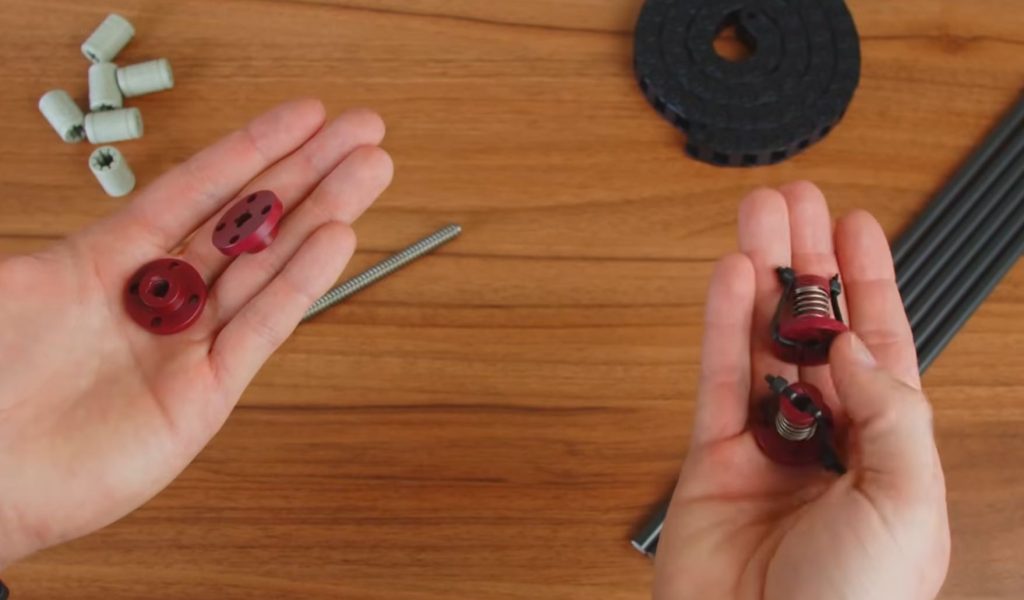 - Śruby pociągowe wraz z nakrętkami dryspin® – bezsmarowe i ciche prowadzenie osi Z drukarki. Nakrętki dostępne również w wersji z kasacja luzu.