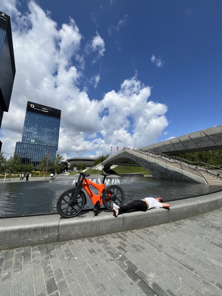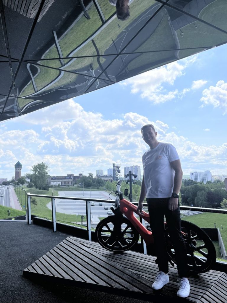 Na zakończenie dnia – krótki postój przy Narodowej Orkiestrze Symfonicznej Polskiego Radia. Tu, wśród dźwięków i ciszy, rower bez hałasu i spalin zdaje się wpisywać w harmonię przestrzeni. Bo igus:bike to nie tylko technologia – to świadome podejście do ruchu, środowiska i miejskiej kultury.