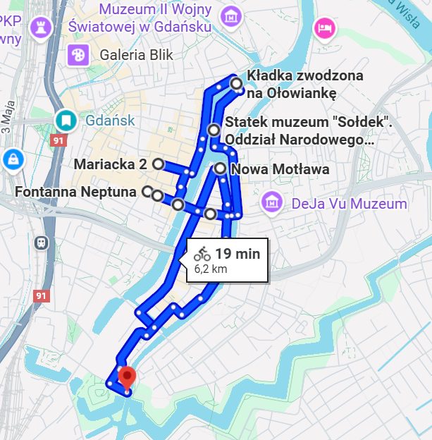 Nasza wycieczka rowerowa po Gdańsku rozpoczęła się spokojną trasą wzdłuż Nowej Motławy. Widok na wodę i odbijające się w niej kamienice tworzył wyjątkową atmosferę, idealną na początek dnia. Przejeżdżając zabytkowymi ulicami Stągiewną i Motławską, mogliśmy poczuć klimat starego Gdańska. Wąskie uliczki z historyczną zabudową tchnęły dawnym hanzeatyckim charakterem miasta.