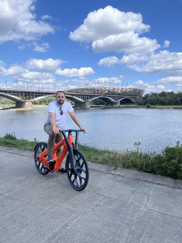 Daniel rozpoczął swoją przygodę z firmą igus w 2012 roku jako Inżynier Sprzedaży. Od 2018 roku pełni funkcję Dyrektora Zarządzającego igus Polska. Dziś otworzył pierwszy etap naszej wyjątkowej rowerowej trasy, pokonując 16 kilometrów przez Warszawę na w pełni odpornym na korozję igus:bike. Po drodze odwiedził m.in. Plac Zamkowy, Stare Miasto i bulwary wiślane, udowadniając, że bezsmarowe rozwiązania doskonale radzą sobie również w miejskiej dżungli.