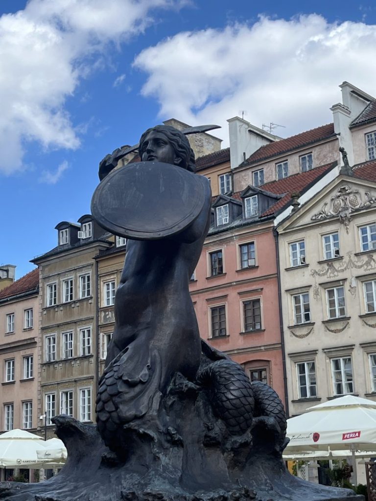 Ruszamy na Bulwary Wiślane – zielone, tętniące życiem miejsce odpoczynku nad rzeką. Tu spotykamy kolejną Syrenkę – symbol odwagi i ducha miasta. Po drugiej stronie Wisły podziwiamy Stadion Narodowy – nowoczesny obiekt i dumę współczesnej Warszawy.